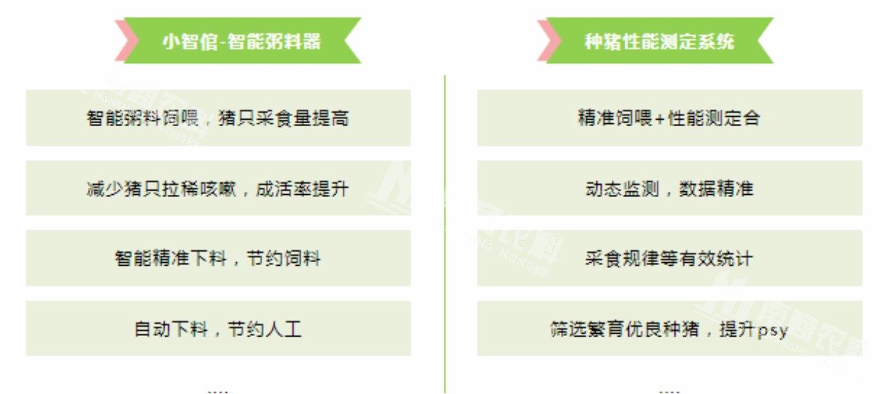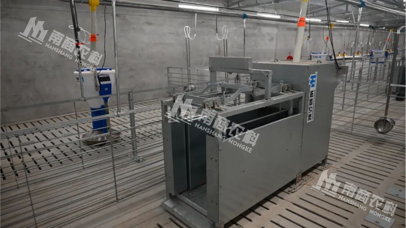 保育舍:采用智能饲喂设备小智倌-智能粥料器(保育版),每两圈保育猪(24头/圈)共用一台小智倌-智能粥料器。此外,保育舍还配备种猪性能测定站,筛选繁育优良种猪,以提升猪场整场效益。