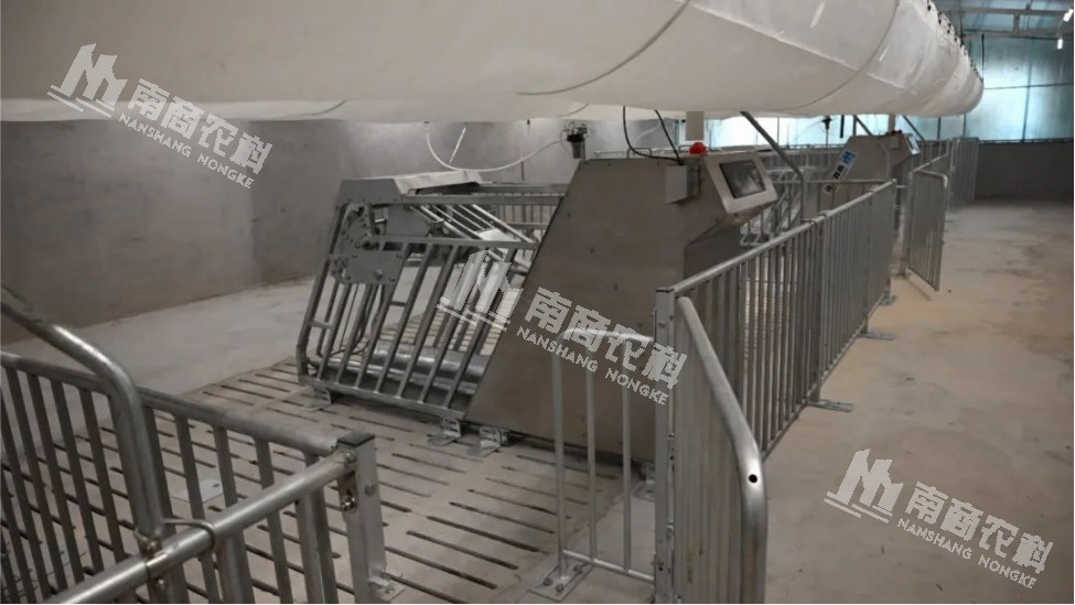 邓州福航养殖场为400头基础母猪场,配置分娩舍、妊娠舍、配种舍、后备保育舍各一栋;还配置有内外生活区、环保区等。该养殖场以智能化为核心,利用物联网终端“南商云”平台,实现对智能饲喂设备、智能环控仪、监控设备、智能水电等的便捷管理,致力于打造生态环保、精准饲喂、智能管理的高标准、现代化智能养猪模式。