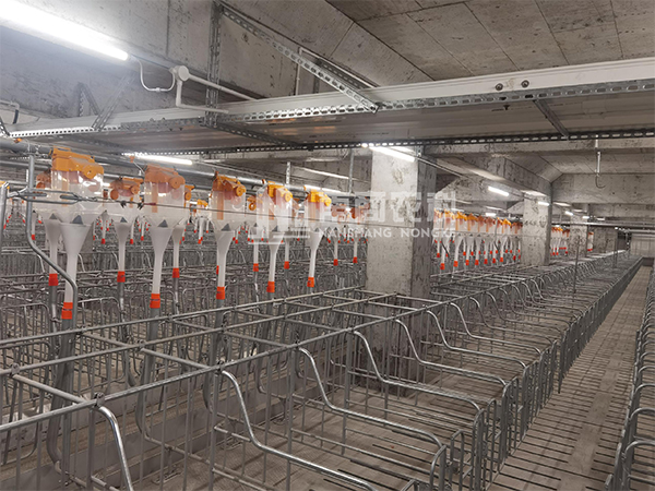 自动输送喂料系统主要由饲料料塔、驱动单元,输送料管,定量杯及干湿喂料器、控制器、传感器和支撑部件等组成。通过料线将饲料密闭快速输送到配重落料器或食槽中,可以单独饲喂每头母猪和群养管理怀孕母猪,能够做到统一时间自动落料,同步饲喂,明显节省人力成本,大幅度降低劳动强度,而且大大方便了猪场管理。