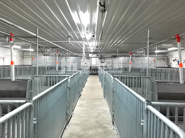 要回答这个问题,首先我们得知道,一头育肥猪占位多少。一般一头育肥猪需要1.2平方左右的空间,1个栏位养10-18头猪比较适合,这样我们就可以算出1个育肥栏位的平方数。两排栏位过道距离设置在1米及以上,然后根据整栋育肥猪舍长度、宽度来规划就可以了。